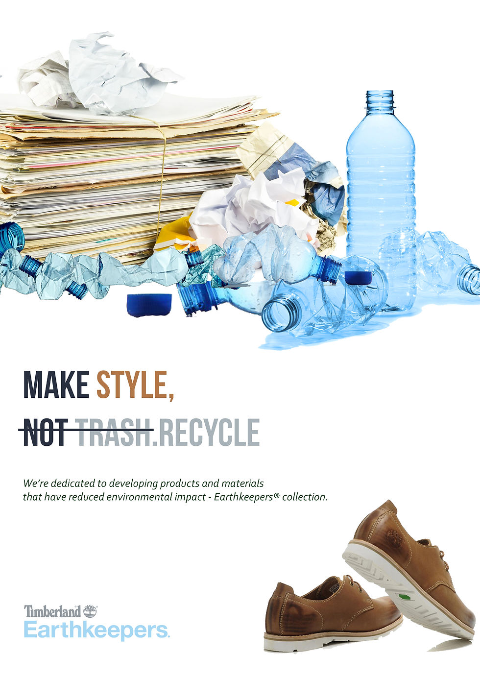In the campaign i make sure to show the audience what makes timberland different from other footwear brands by focusing on 'recycling'